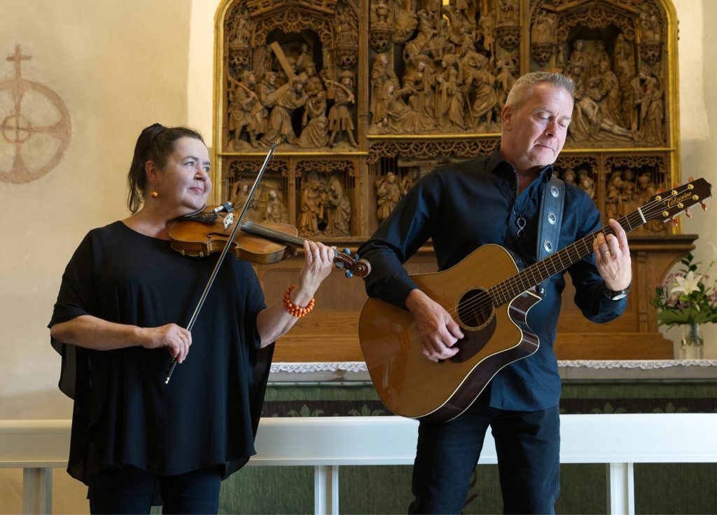 Trubaduuri Jerry ja Ilona Ala-Leppilampi Janakkalan Pyhän Laurin kirkossa 7.4.2024